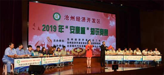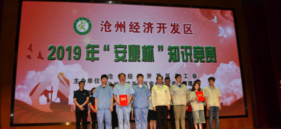 7月16日,由滄州經(jīng)濟開(kāi)發(fā)區總工會(huì )、滄州經(jīng)濟開(kāi)發(fā)區安全生產(chǎn)監督管理局主辦,北京現代汽車(chē)有限公司滄州分公司協(xié)辦,滄州經(jīng)濟開(kāi)發(fā)區2019年“安康杯”知識競賽在北京現代滄州分公司舉行。我公司綜合部部長(cháng)呂斌攜道恩藥業(yè)安全環(huán)保部李世杰、綜合部劉立紅參加此次比賽。比賽分為必答題、搶答題、風(fēng)險題三個(gè)環(huán)節,比賽過(guò)程中,我公司三位選手沉著(zhù)冷靜、對答如流,經(jīng)過(guò)激烈的角逐,取得二等獎的驕人成績(jì)。